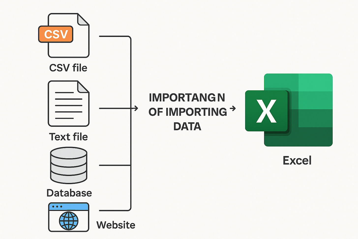 Importing data means bringing data from outside Excel – like from a file, folder, website, or another software – into Excel so you can work with it.